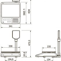 Весы включают в себя пластиковый обтекаемый корпус, прямоугольную весовую платформу из нержавеющей стали, вертикальную стойку с весовым индикатором. На передней наклонной панели корпуса расположена клавиатура с цифровыми кнопками, 7 клавишами быстрого выбора ходовых товаров, кнопками вычисления суммы, сдачи, учета веса тары и др.
