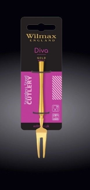 Вилка для улиток Wilmax Diva матово-золотая L 115 мм (на блистере)