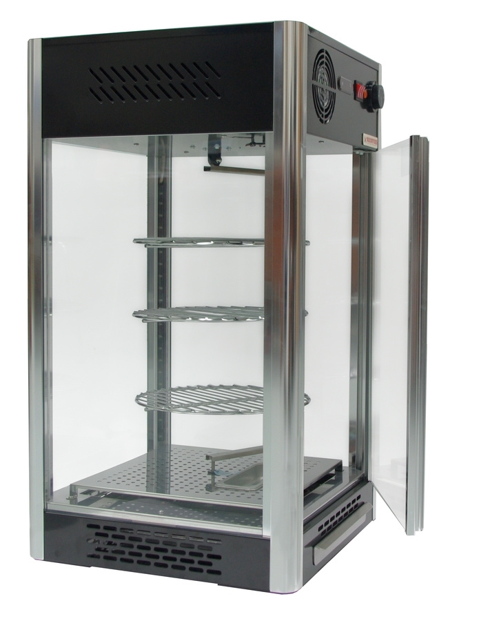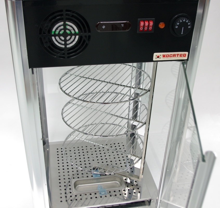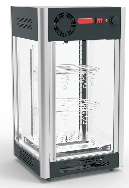 Витрина тепловая Koreco RTR108L предусматривает возможность выбора температурного режима, соответствующего условиям хранения конкретных продуктов и блюд. Напольная модель вертикальной формы комплектуется 4 хромированными полками, которые вращаются. Предусмотрен доступ к внутреннему пространству витрины со стороны продавца. Камера изнутри подсвечивается светодиодными лампами.