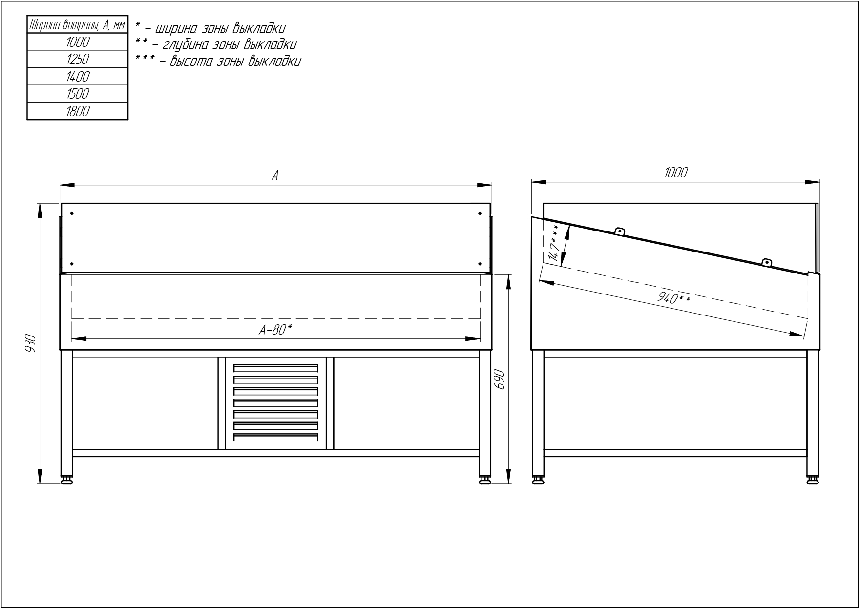 Витрина для выкладки рыбы на льду с охлаждением Финист VFg/1000