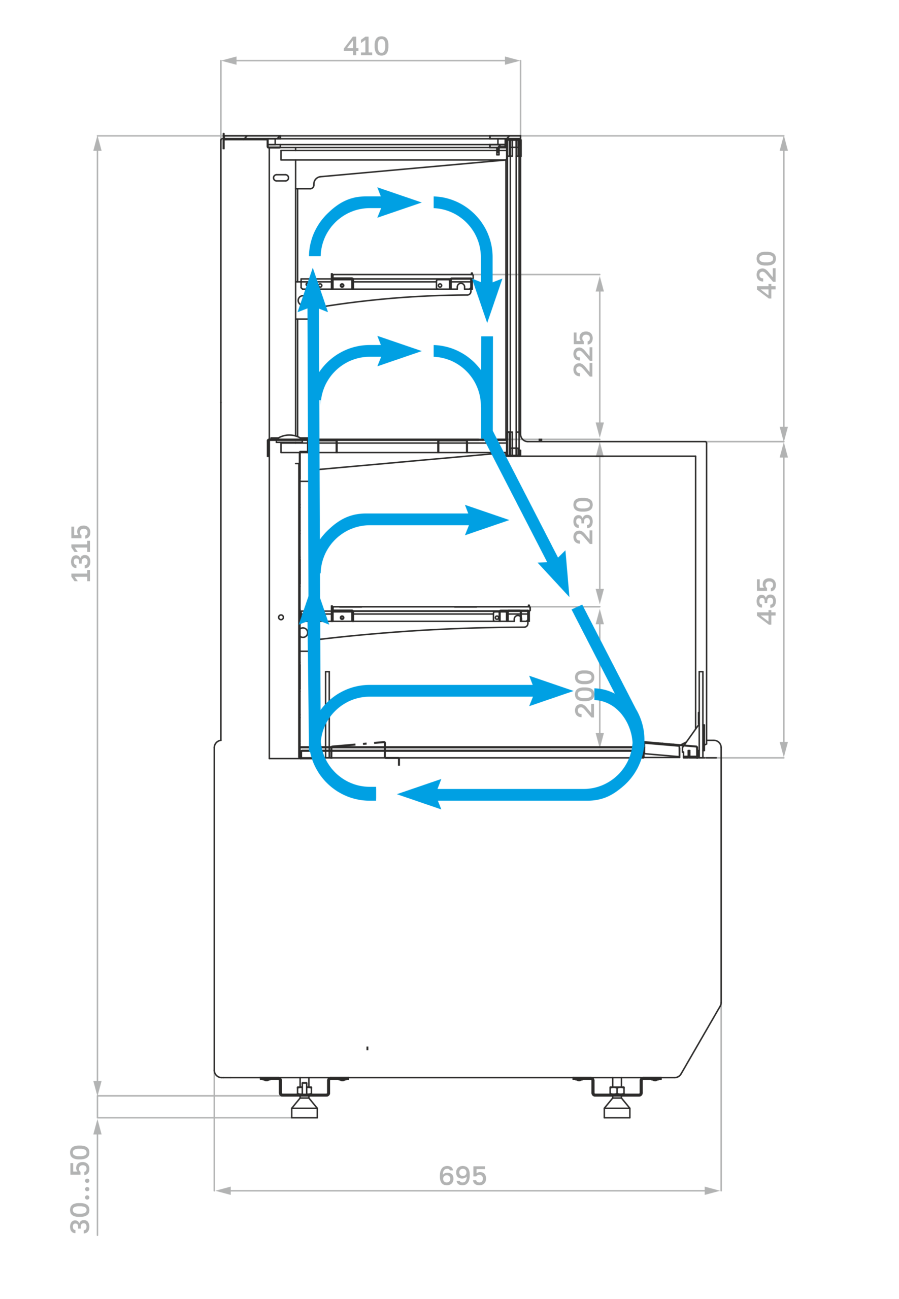 Стандартная комплектация холодильной витрины Carboma Cube 2 Combi KC70 VV/VV 1,3-2-1 STANDARD БОКОВИНА СТУПЕНЬКА (версия 2.0) (9005)