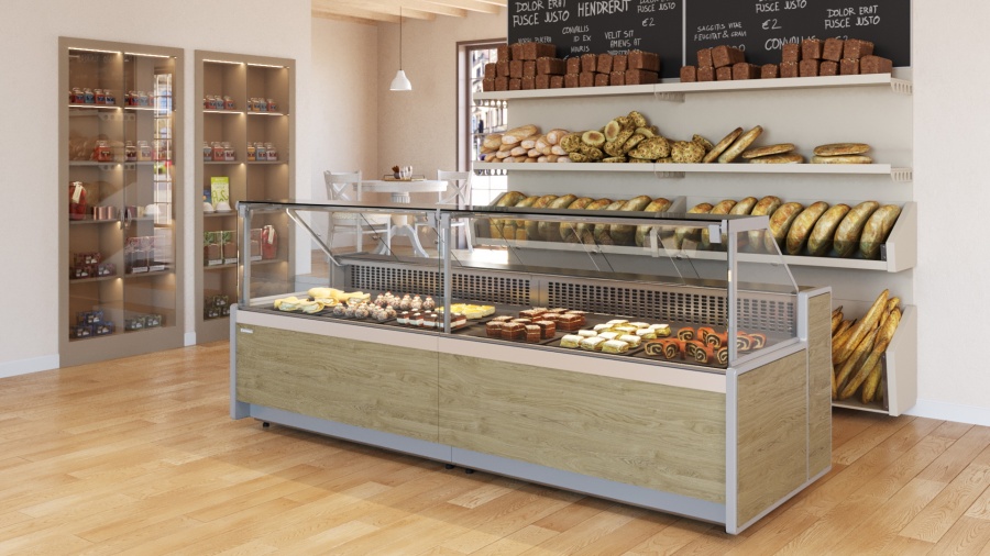 Холодильная витрина GC111 Gelios (динамика) с фиксируемым фронтальным стеклом. Исполнение передней панели: ламинированный МДФ 1010 (Мариель). Стандартная комплектация: