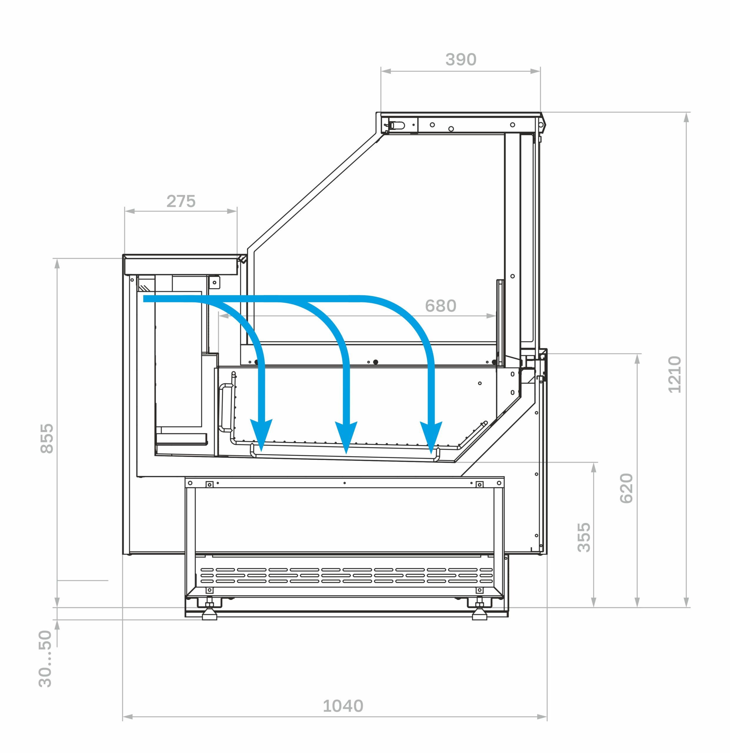 Стандартная комплектация низкотемпературной холодильной витрины Carboma Bavaria 4 GC110 SL 1,5-1 (версия 2.0) без боковин