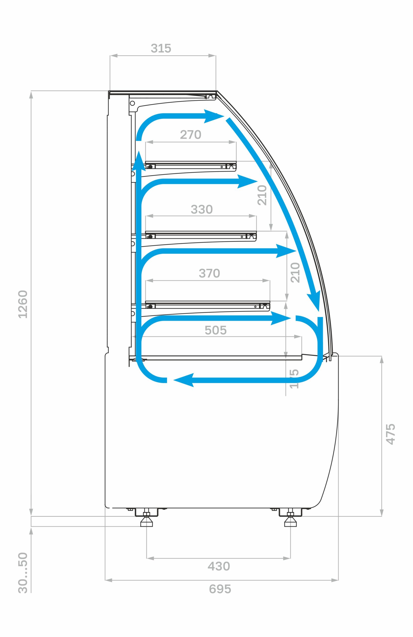 Стандартная комплектация холодильной кондитерской витрины K70 VM 0,9-1 LIGHT (версия 2.0) (9005)