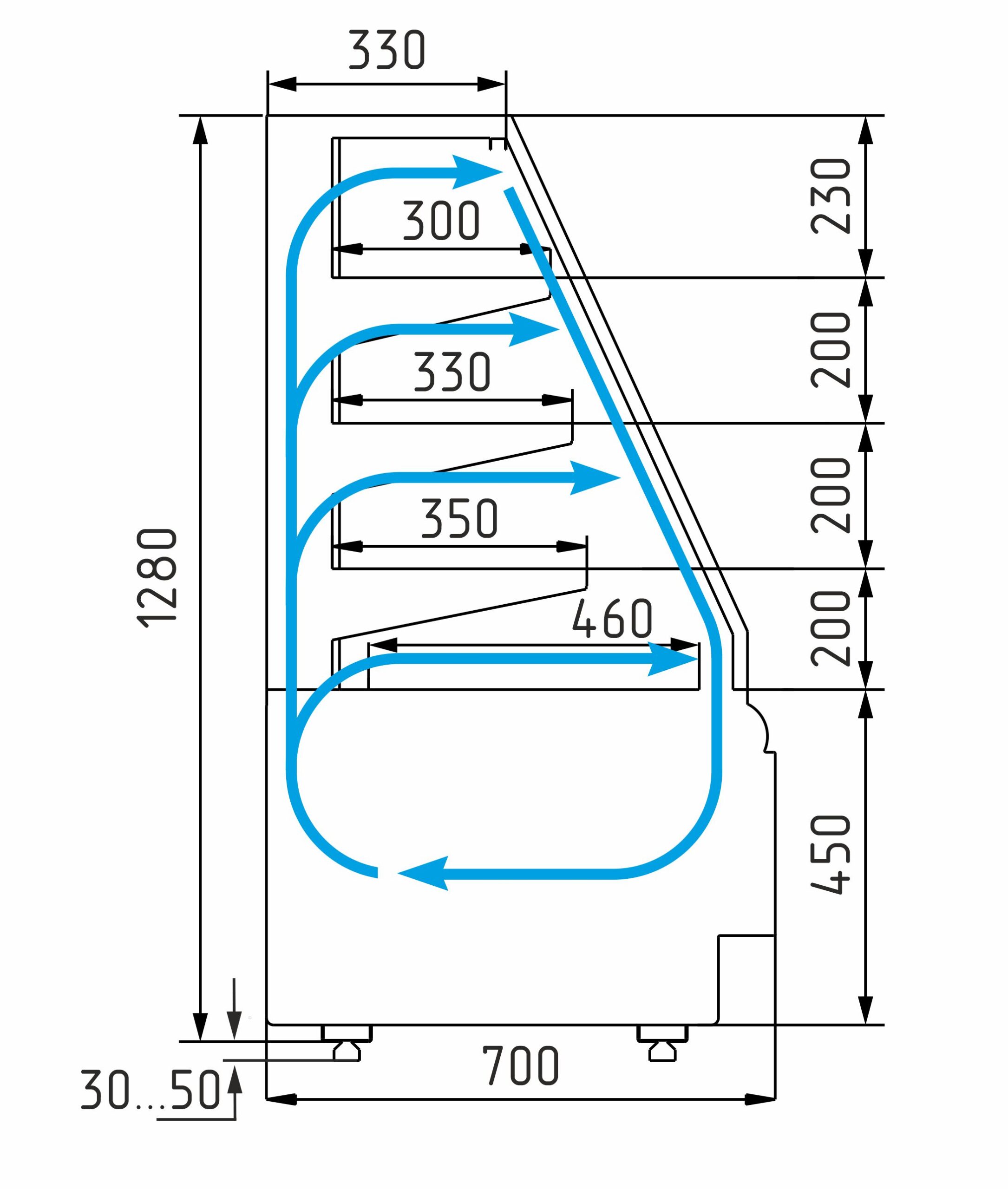 Стандартная комплектация холодильной кондитерской витрины Carboma Cube KC70 VM 0,6-2 STANDARD 0102-0109 (открытая)