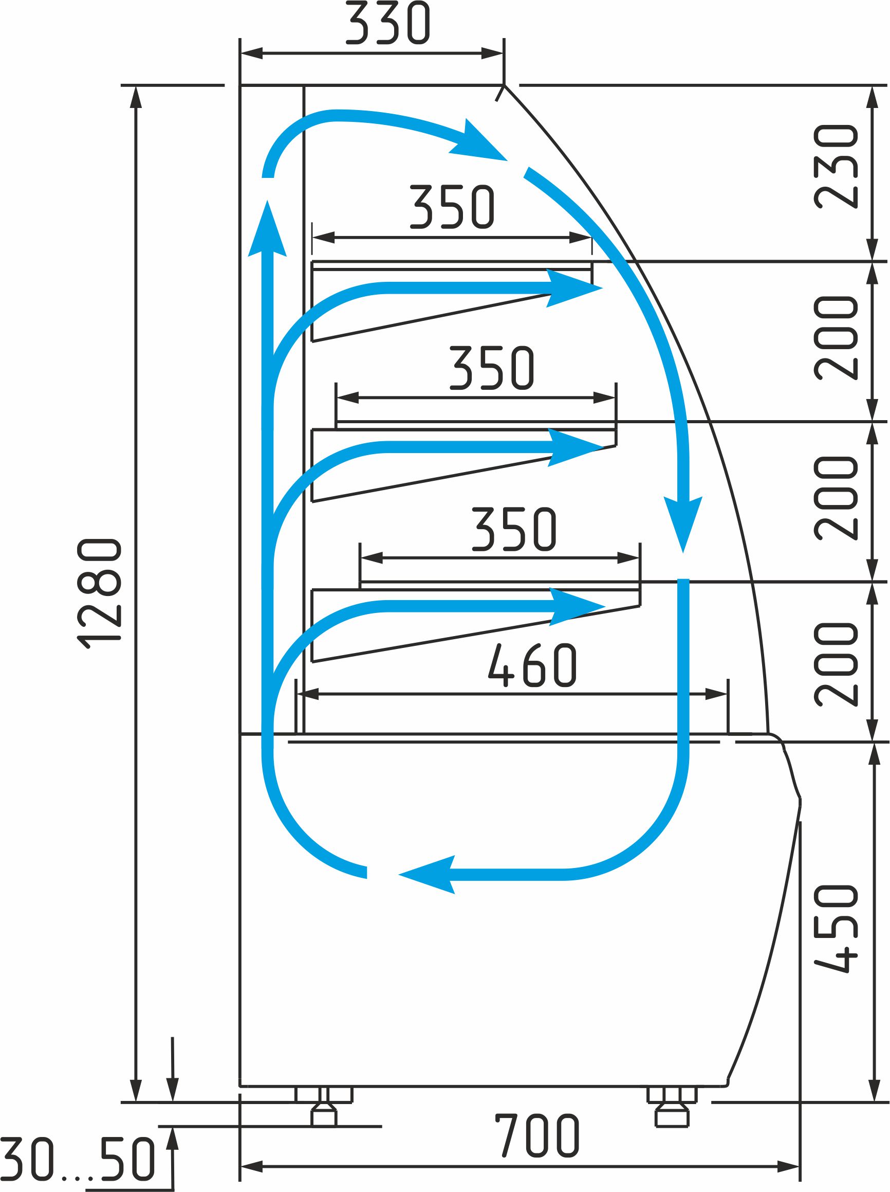 Стандартная комплектация холодильной витрины Carboma Flandria K70 VV 0,9-1 STANDARD 9006-9005 (ВХСв-0,9д Carboma Люкс)