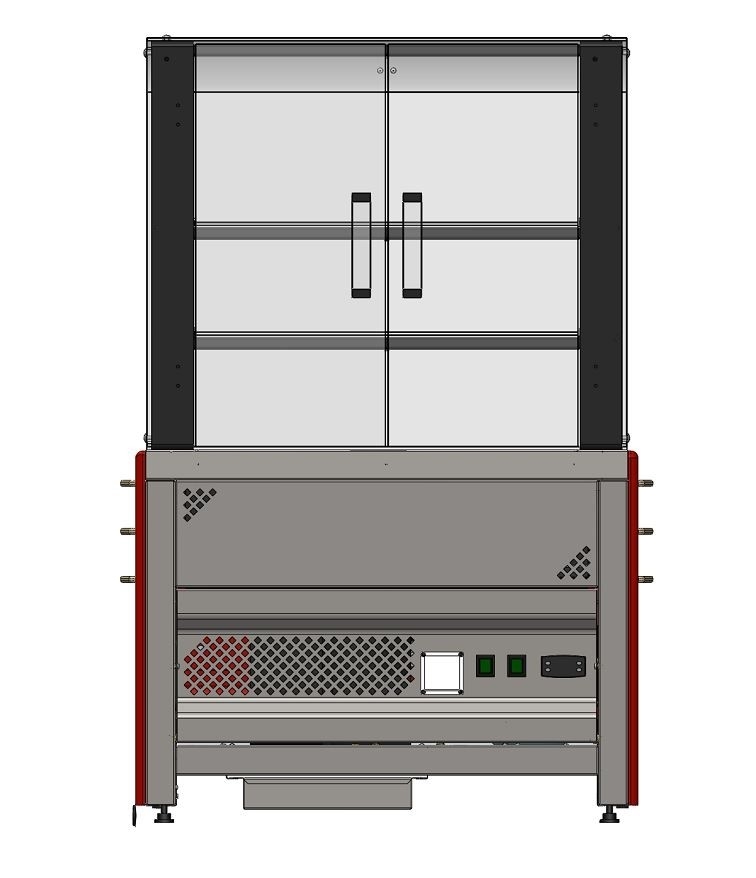 - Доступ к продуктам со стороны рабочего персонала осуществляется с помощью раздвижных створок витрины, со стороны потребителя доступ к продуктам отсутствует;