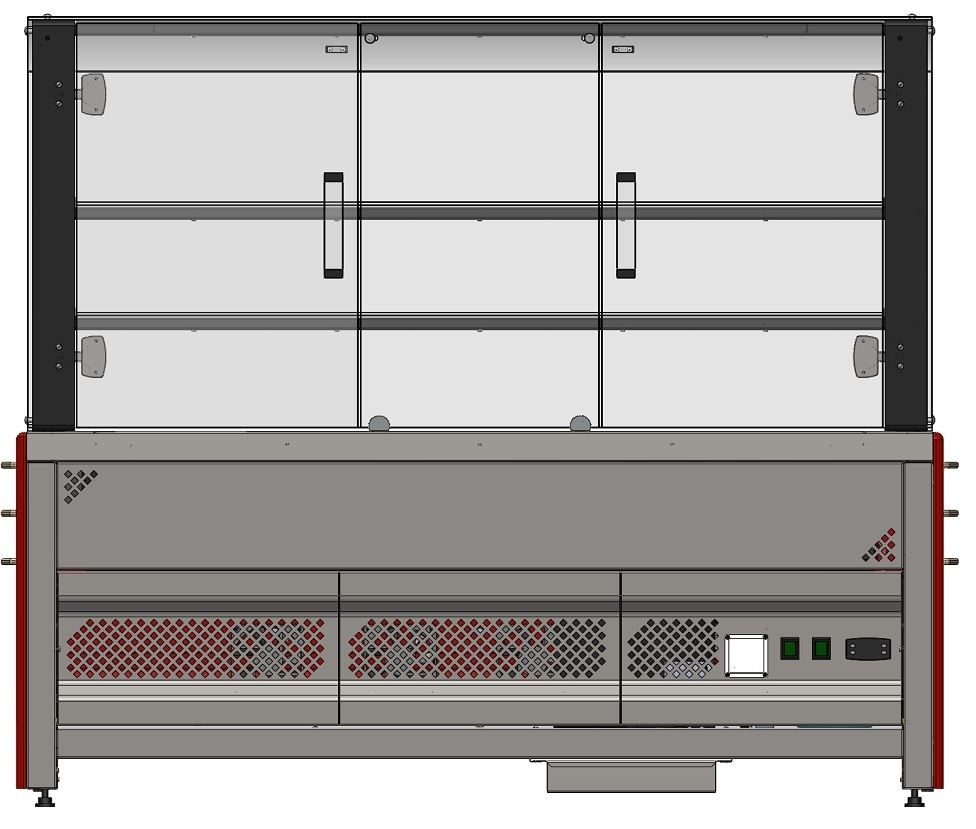 - Доступ к продуктам со стороны рабочего персонала осуществляется с помощью раздвижных створок витрины, со стороны потребителя доступ к продуктам отсутствует;