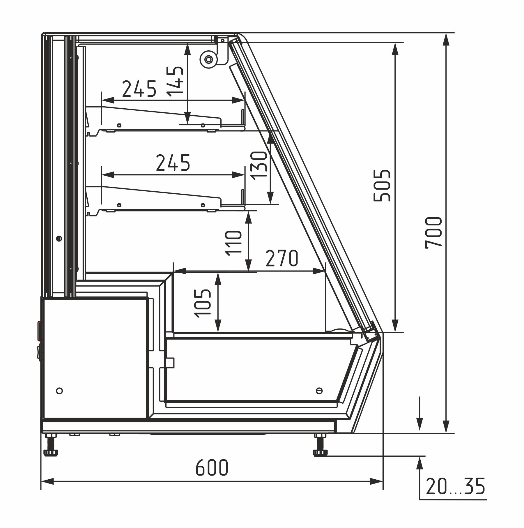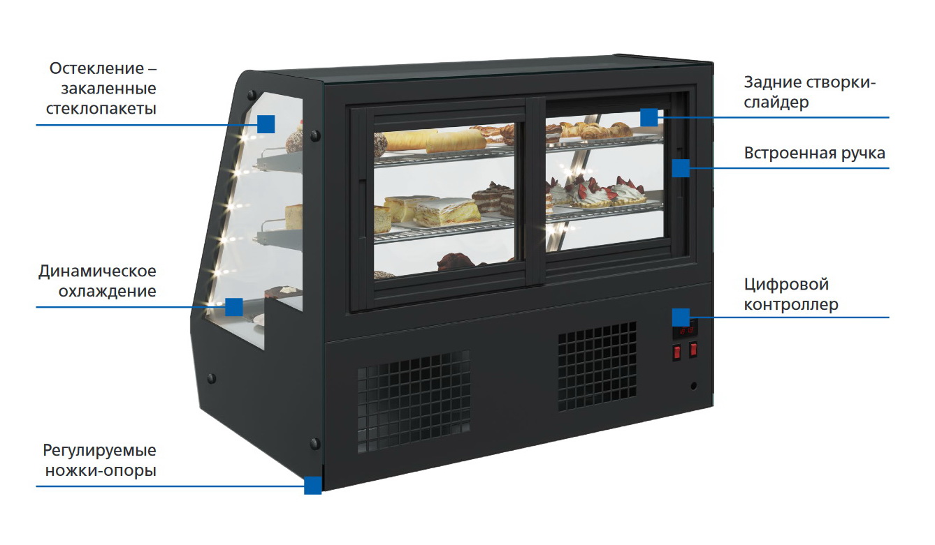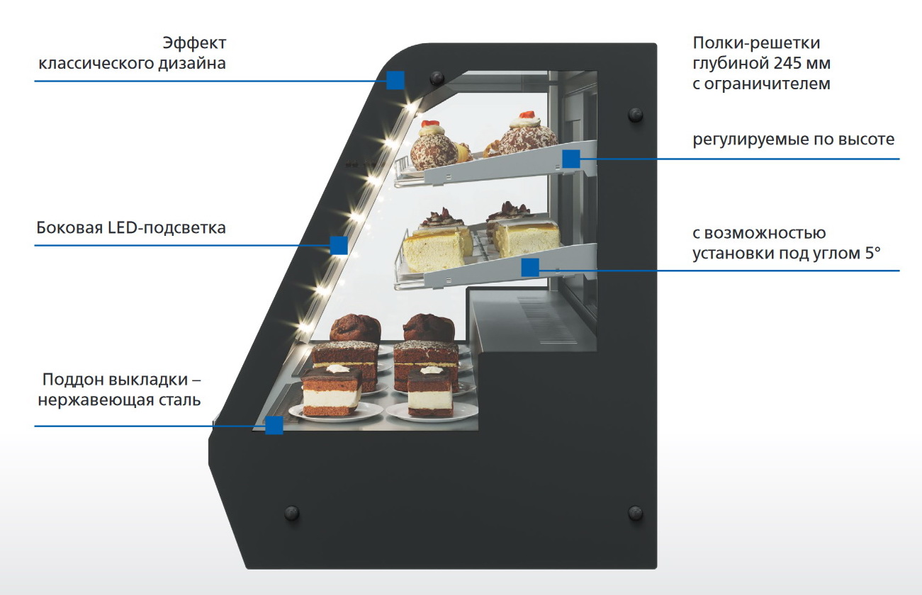 - 2 полки-решетки с ограничителями, с возможностью установки под углом 5 градусов