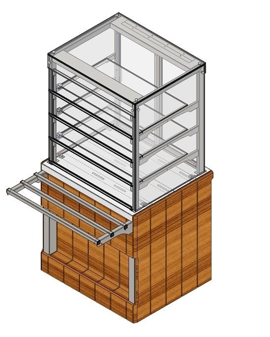 - Доступ к продуктам со стороны рабочего персонала осуществляется с помощью раздвижных створок витрины, со стороны потребителя доступ через откидные крышким;