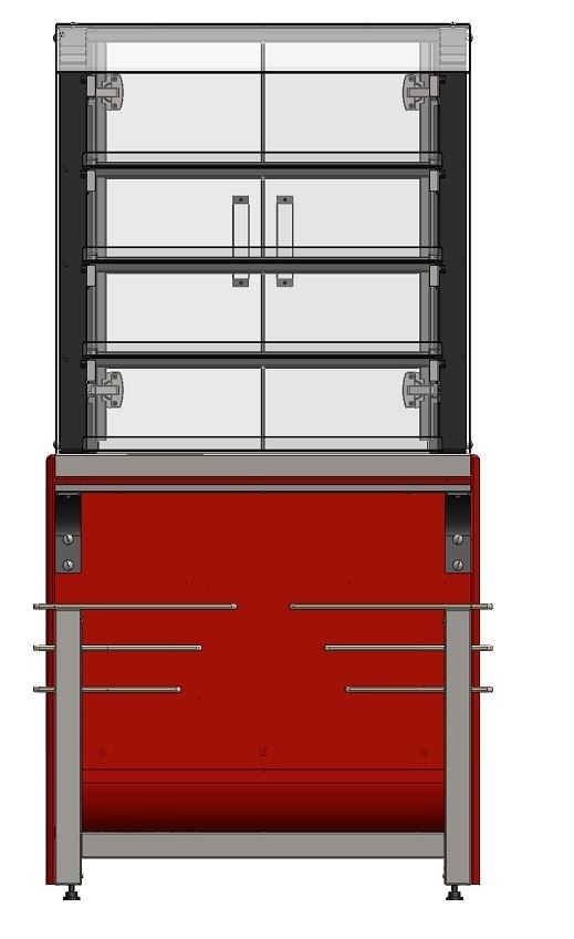 - Доступ к продуктам со стороны рабочего персонала осуществляется с помощью раздвижных створок витрины, со стороны потребителя доступ через откидные крышким;
