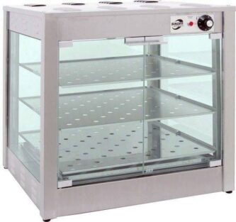Тепловая витринаAirhot HW-136предназначена для демонстрации и подогрева пиццы, булочек, тортов, пирогов и различных закусок. Постоянная температура, поддерживающаяся в витрине, позволяет сохранить вкус и мягкость продуктов. Корпус выполнен из нержавеющей стали, с четырех сторон расположено закаленное стекло. Модель оснащена 3 решетчатыми полками.