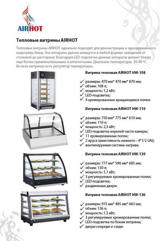Витрина тепловая настольная AIRHOT HW-110 купить с гарантией в Москве по низкой цене с доставкой по России у официального дилера. Возможность покупки в кредит