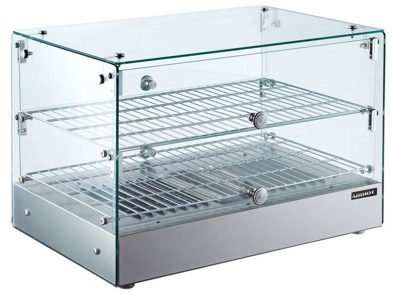 Витрина тепловая AirhotHW-50— настольная модель с функцией пароувлажнения, исполненная в кубическом дизайне. Используется в кафе, булочных, бистро, ресторанах, точках фаст-фуда, отделах кулинарии супермаркетов для демонстрации выпечки, закусок, пирогов и поддержании их в тёплом состоянии. Среди плюсов такого оборудования — покупатель может сразу получить горячую выпечку/блюдо, позволяет организовать красивую экспозицию продукции. Модель полностью стеклянная, что обеспечивает всестороннюю обзорность предлагаемых изделий и блюд.