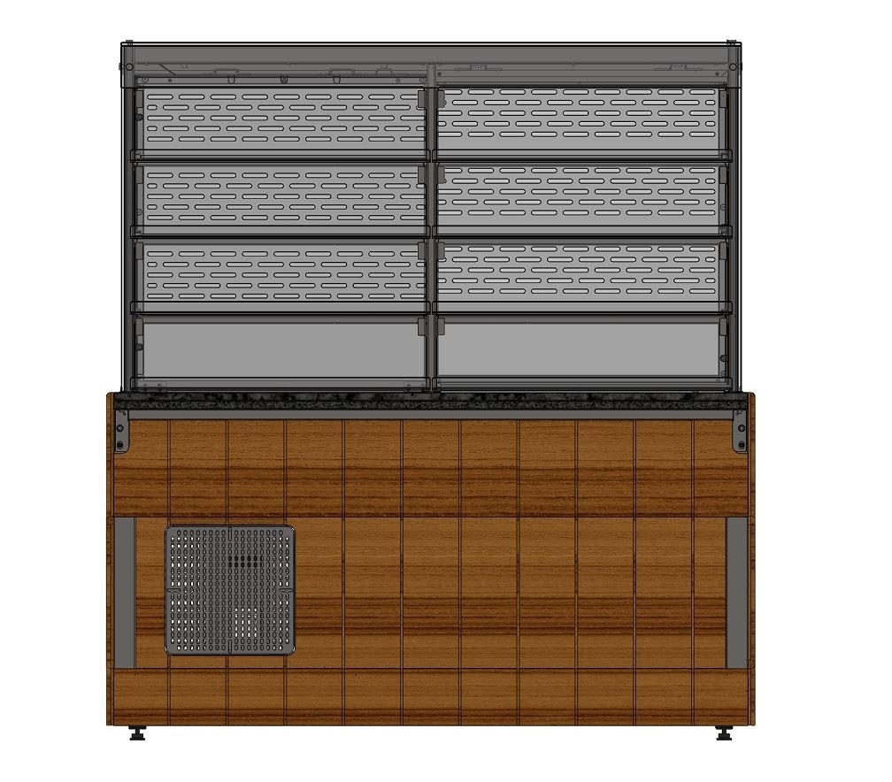 - Со стороны персонала в витрине есть ниша для инвентаря, как дополнительная опция ниша может быть снабжена створчатой дверкой;