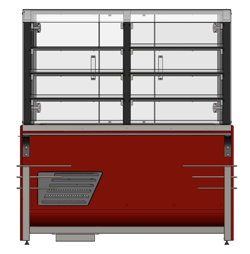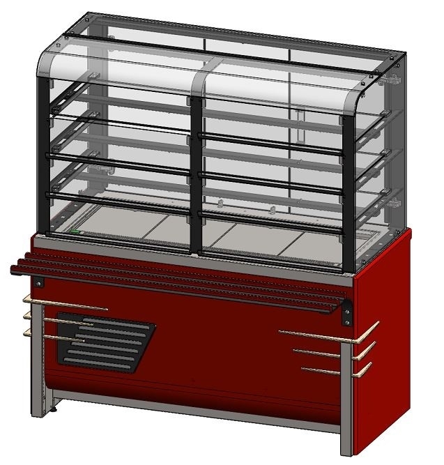 - Доступ к продуктам со стороны рабочего персонала осуществляется с помощью раздвижных створок витрины, со стороны потребителя доступ через откидные крышки;