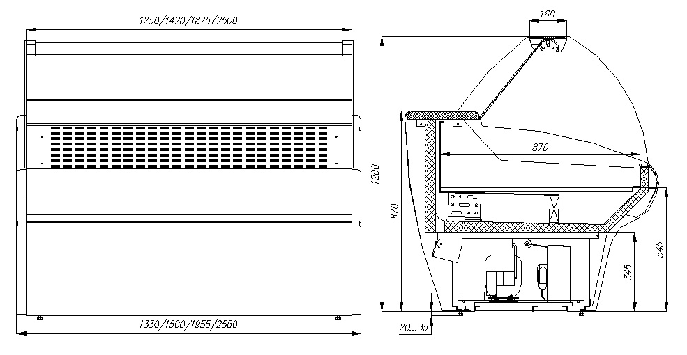 Опции для холодильной витрины Carboma G110: