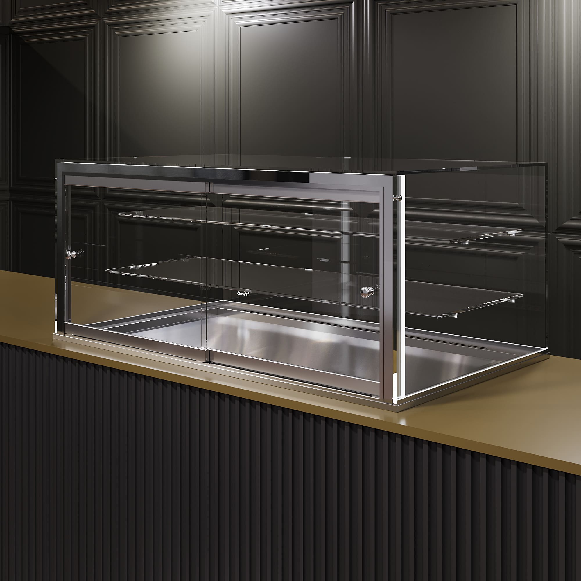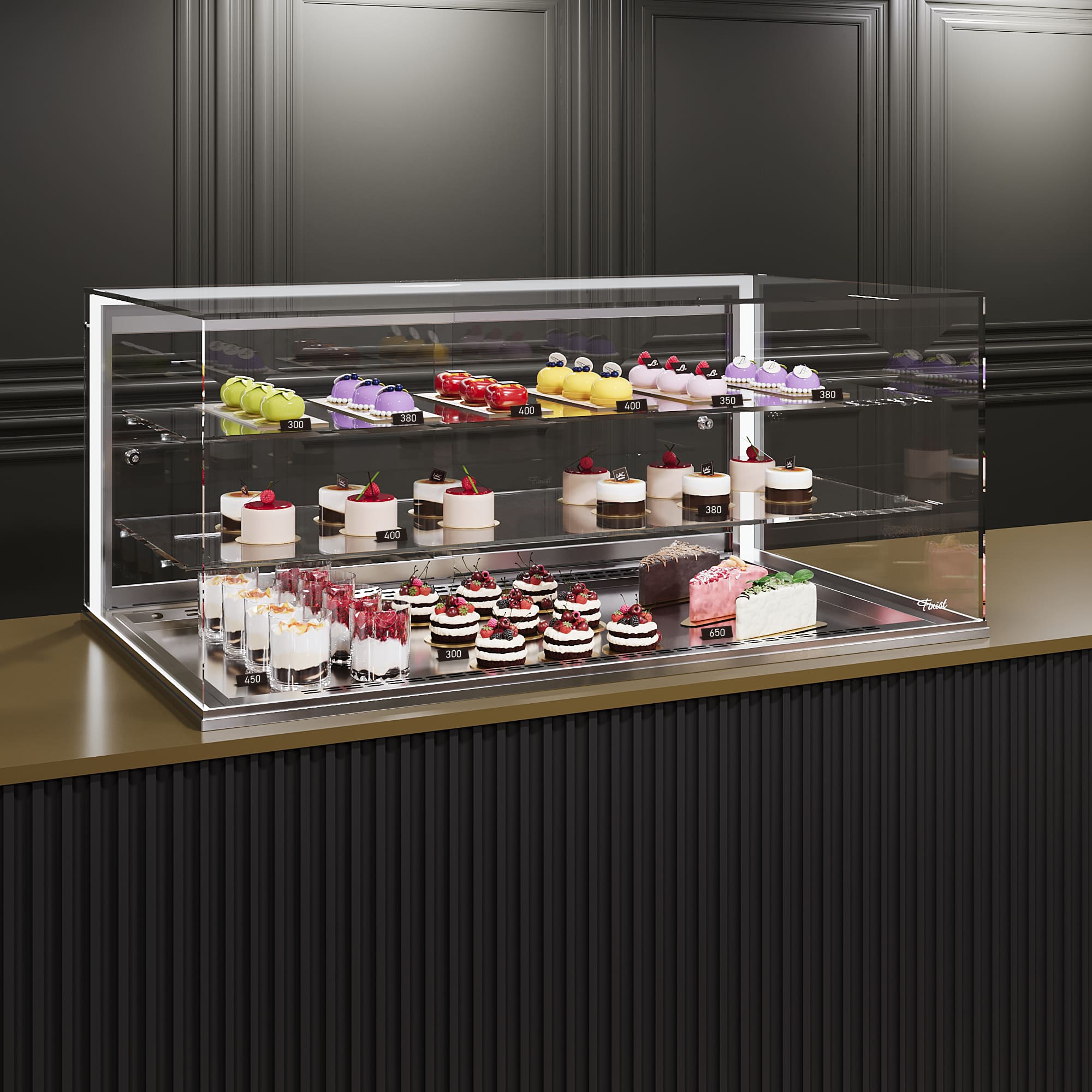 Встраиваемая витрина Финист Glassier G812-8/65/5/2 служит для кратковременного хранения и эффектной подачи кондитерских изделий при температуре от +8 до +12°С. Подходит для экспозиции шоколадных изделий, конфет и пралине. Высота стеклянного купола 500 мм.