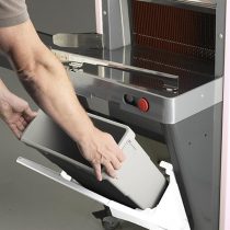 Хлеборезка Jac ECO+ 450M — напольная эргономичная машина с тефлоновыми ножами, счётчиком и системой автоматической смазки, что делает её эффективной при нарезке любых видов хлебной продукции, включая хлеб с высоким содержанием ржаной муки. Конструкция машины рамная, имеет высокий запас прочности. Оборудована колёсиками.