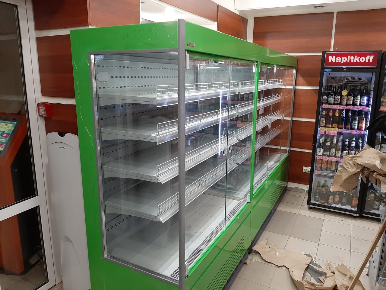 - Фруктовая: 4 ряда полок по 400 мм, с регулируемым наклоном; ценникодержатели пластиковые; наклонное зеркало.