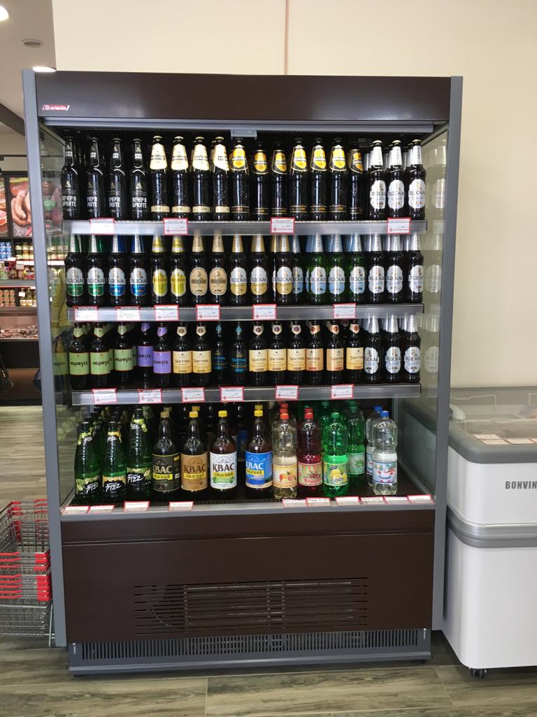 • Фруктовая: 4 ряда полок по 400 мм, с регулируемым наклоном; ценникодержатели пластиковые; наклонное зеркало.