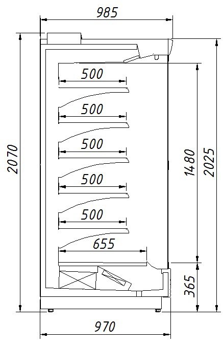 | Глубина выкладки | 500 мм (полки) / 655 мм (низ) |