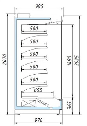 | Глубина выкладки | 500 мм (полки) / 655 мм (низ) |