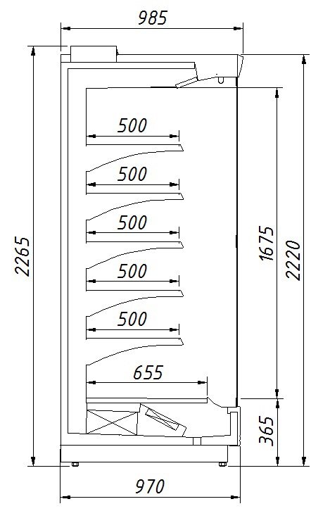 | Глубина выкладки | 500 мм (полки) / 655 мм (низ) |