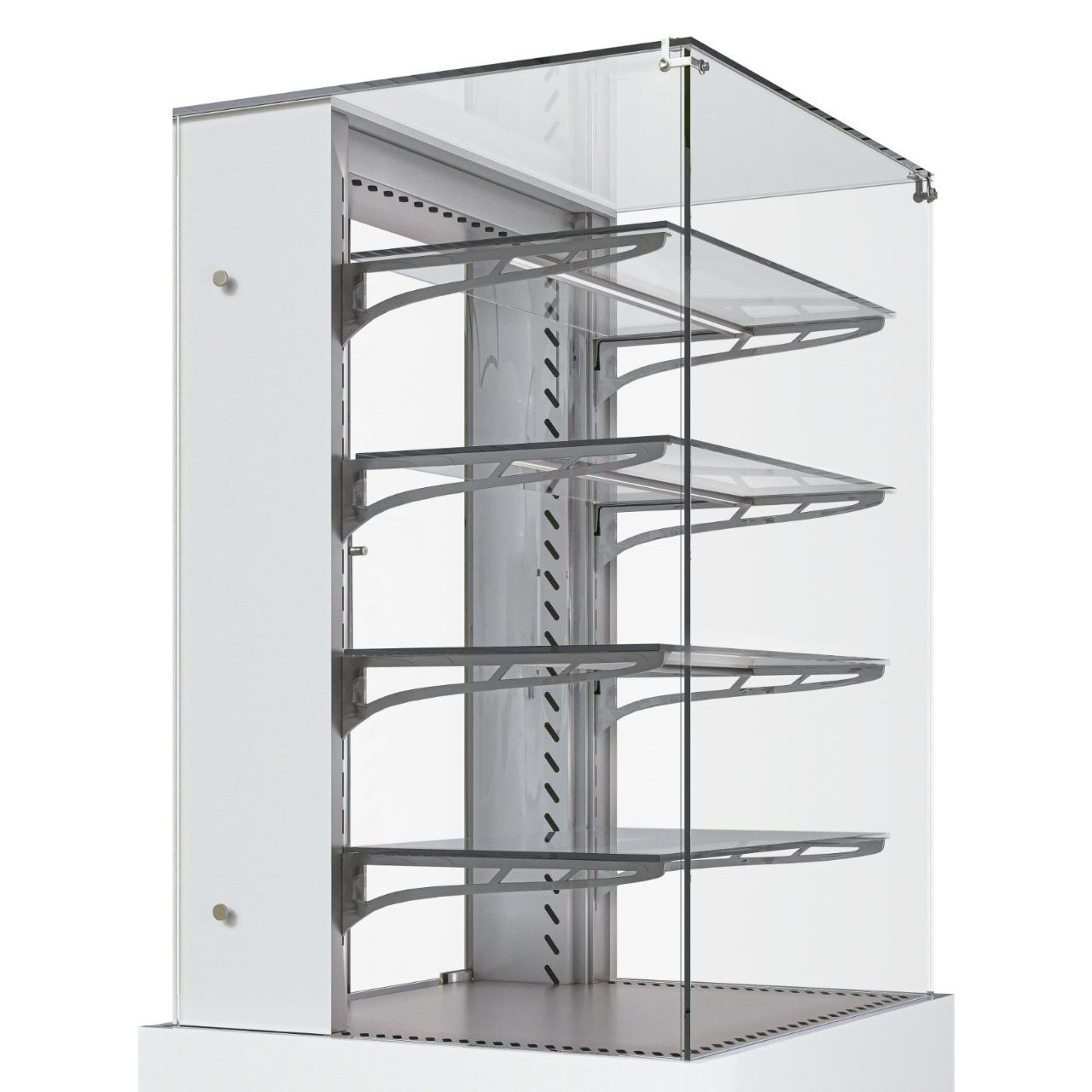 Аккуратный дизайнерский фасад из МДФ и тонкие грани стекла не отвлекают внимание покупателей от продукции.