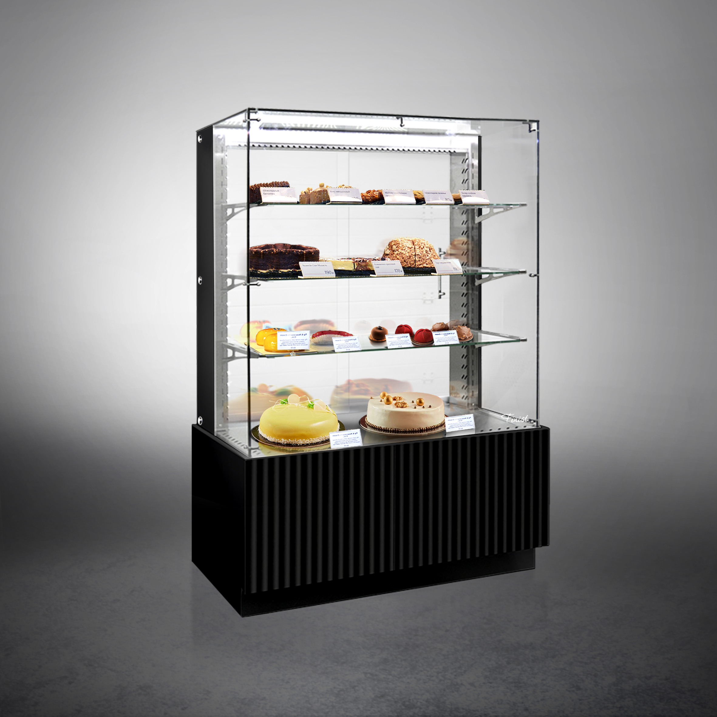 Напольные кондитерские витрины AIR LUX предназначены для создания единых кондитерских линий и стыкуются между другими витринами серии LUX. Витрина может устанавливаться и как отдельно стоящая единица. В стандартном оснащении комплектуется боковыми стеклами и фасадами.