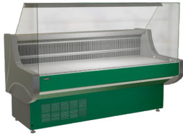 Холодильные витрины серии «Альтаир» имеют встроенный холодильный агрегат и предназначены для небольших рынков и малоформатных магазинов. Особенность линейки заключается в ее модульности: остекление с радиусного на кубическое