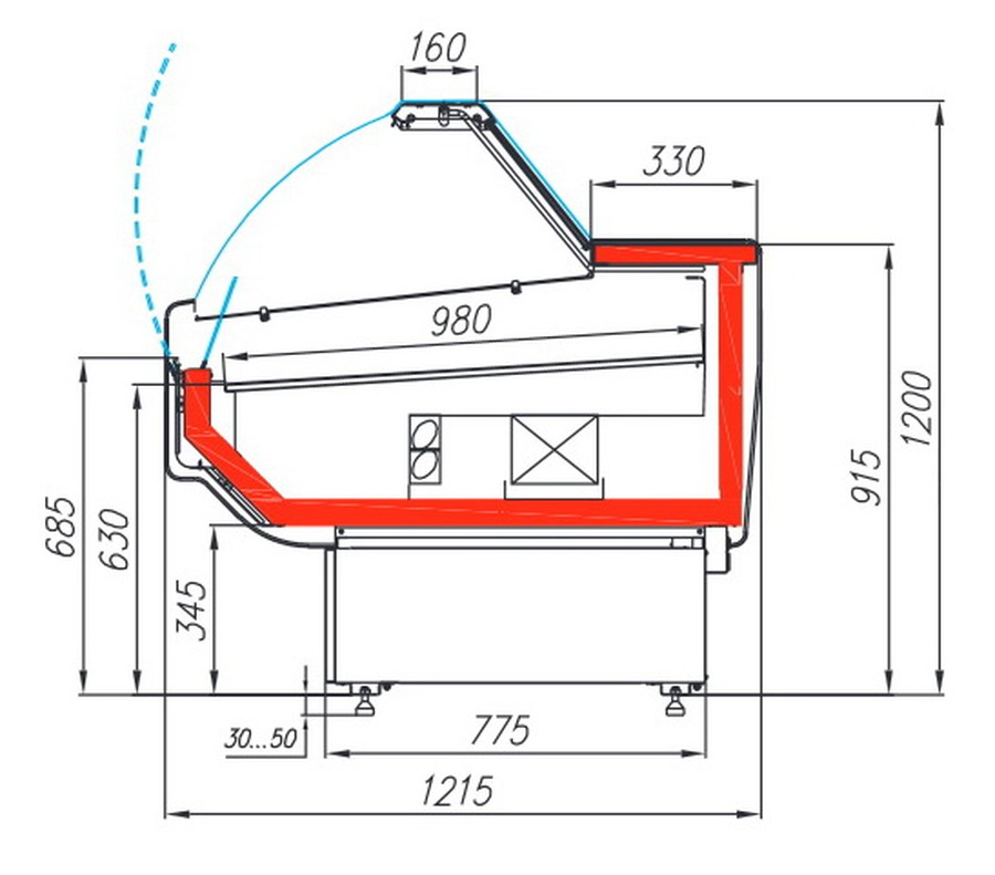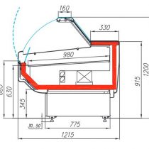 - экспозиционная поверхность и столешница из шлифованной нержавеющей стали