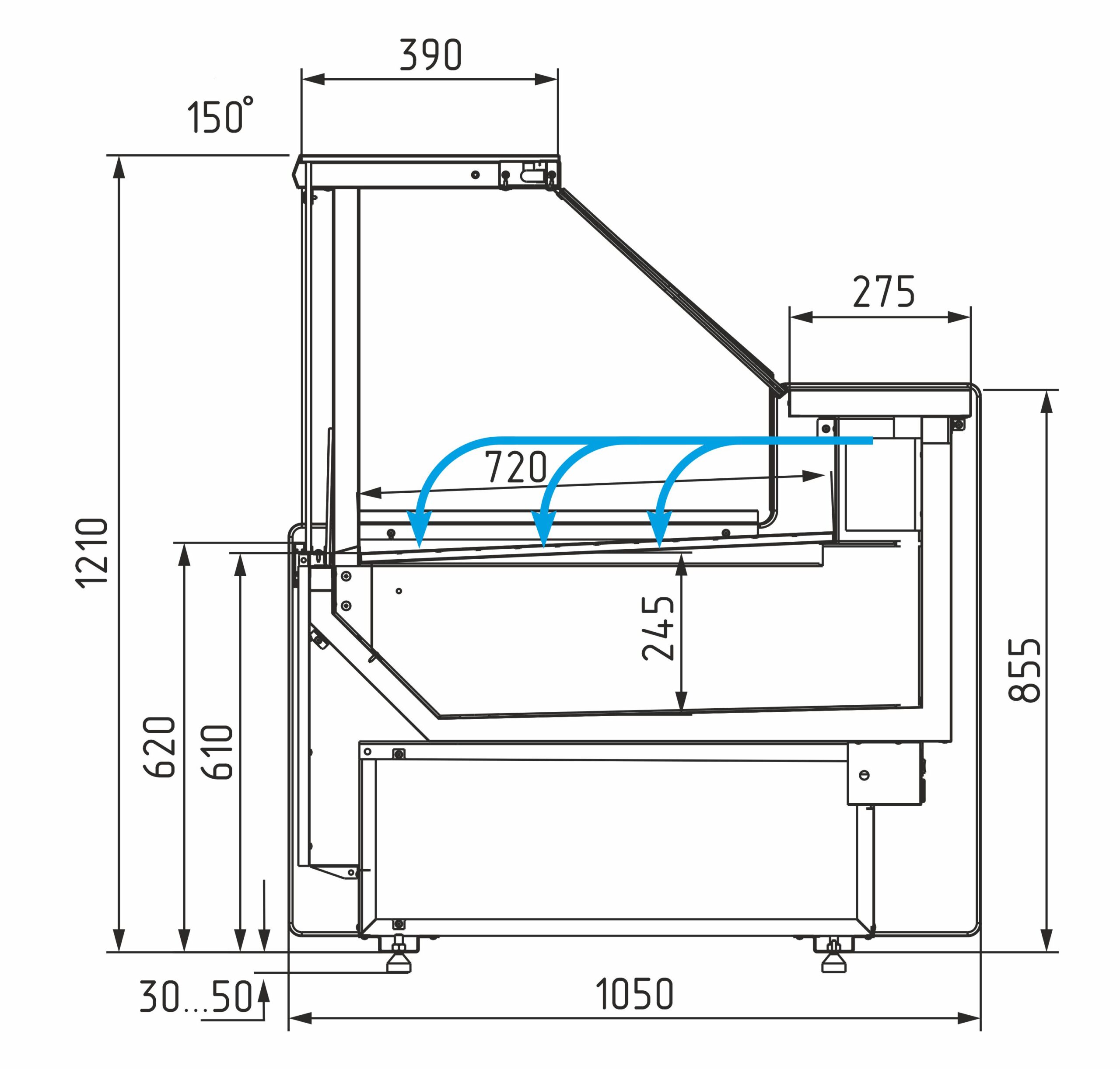 • 2-ступенчатые поддоны для выкладки (общая высота — 120 мм, общая глубина — 480 мм)