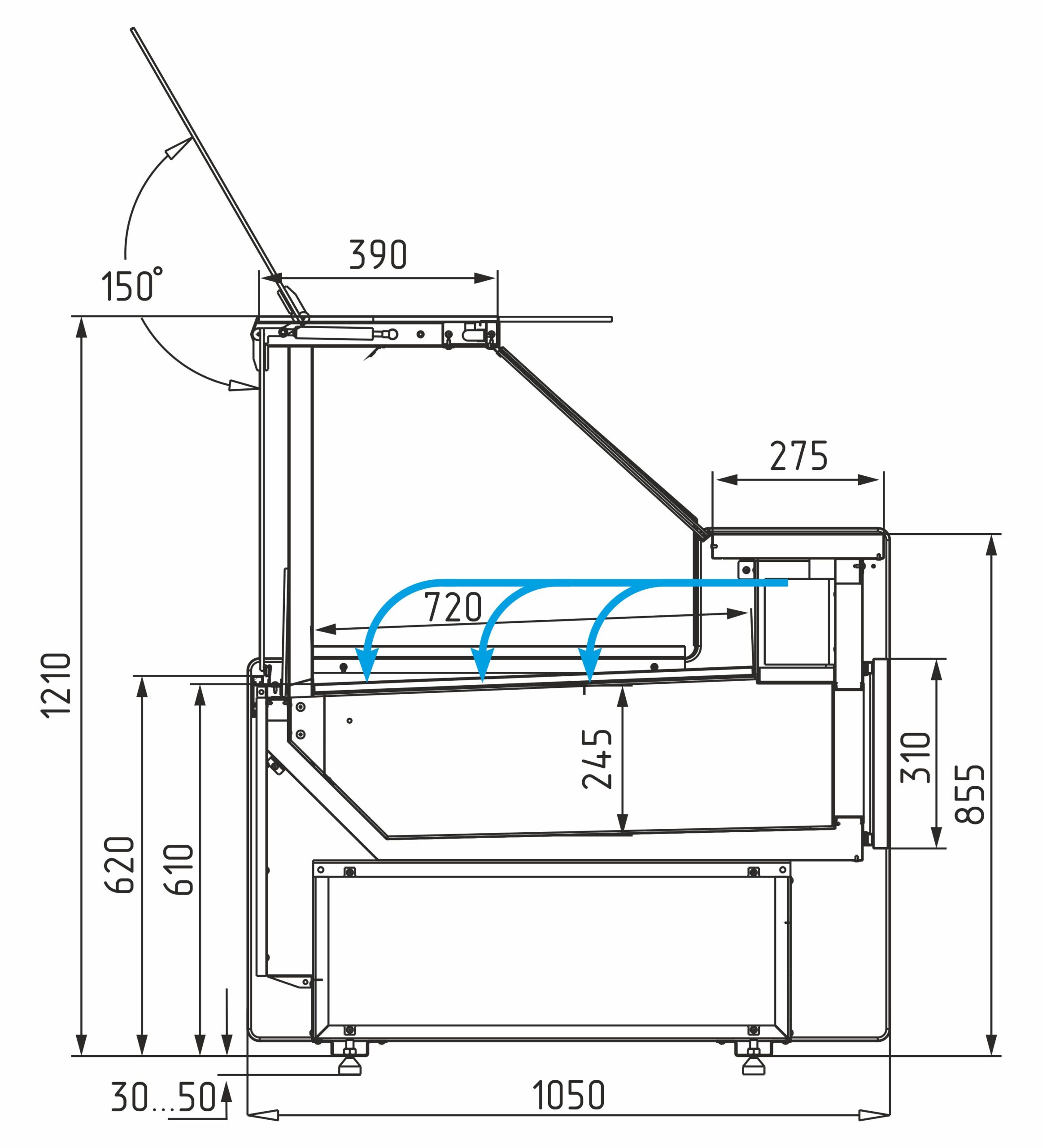 • 2-ступенчатые поддоны для выкладки (общая высота — 120 мм, общая глубина — 480 мм)