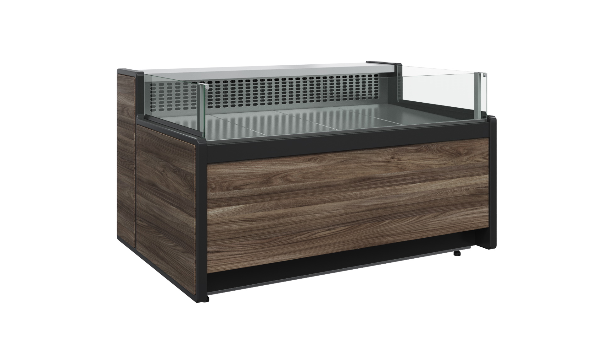 Холодильная витрина Carboma GC111 Gelios открытая (для самообслуживания, рыба на льду). Исполнение передней панели: ламинированный МДФ 1008 (Темный дуб). Стандартная комплектация: