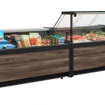 Холодильная витрина GC111 Bavaria 3 с подъемным стеклом на газлифтах. Варианты исполнения передней панели: ламинированный МДФ 1008 (темный дуб), 1010 (мариель). Стандартная комплектация:
