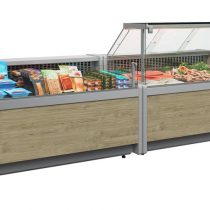 Холодильная витрина GC111 Bavaria 3 открытая (для самообслуживания). Варианты исполнения передней панели: ламинированный МДФ 1008 (темный дуб), 1010 (мариель). Стандартная комплектация:
