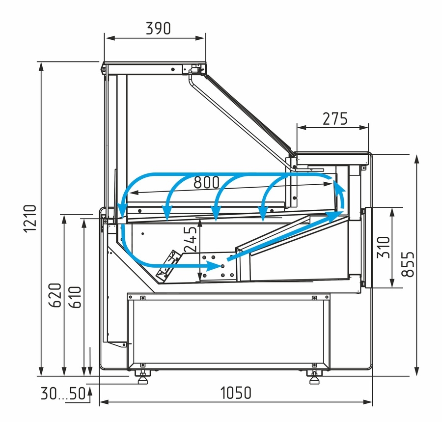 • экспозиционная поверхность, столешница из шлифованной нержавеющей стали