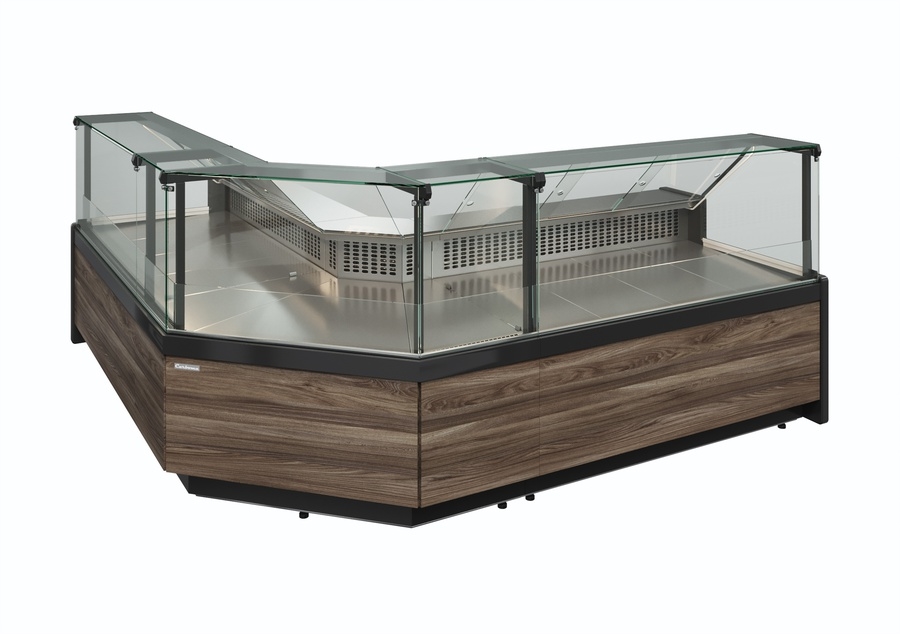 Холодильная витрина GC111 Bavaria 3 (динамика) с подъемным стеклом на газлифтах. Варианты исполнения передней панели: ламинированный МДФ 1008 (темный дуб), 1010 (мариель). Стандартная комплектация:
