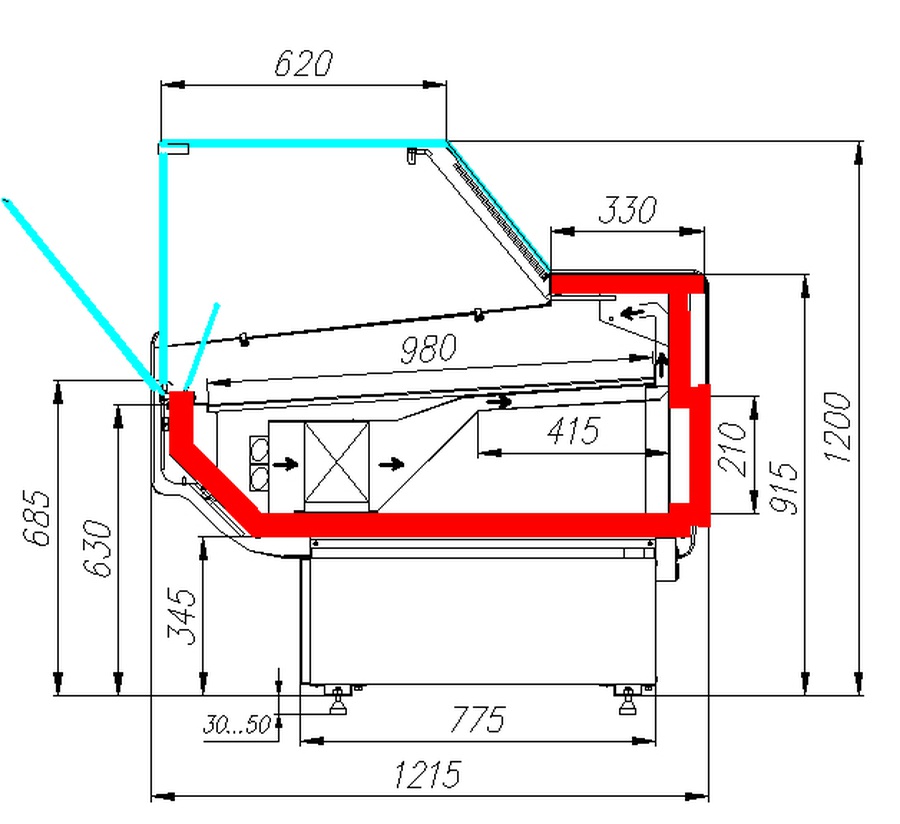- экспозиционная поверхность и столешница из шлифованной нержавеющей стали