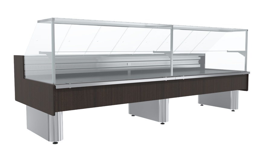 Указана длина с боковинами (заказываются отдельно). Варианты исполнения фронтальной панели: окрашенная сталь (RAL 9003, 9005, 9006, 3020,1023, 5017, 6029, 1015), нержавеющая сталь (RAL 0430), ламинированный МДФ 1005 (венге), 1006 (дуб). Возможна стыковка холодильных витрин Carboma GC110 в линию.