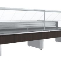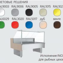 Указана длина с боковинами (заказываются отдельно). Варианты исполнения фронтальной панели: окрашенная сталь (RAL 9003, 9005, 9006, 3020,1023, 5017, 6029, 1015), нержавеющая сталь (RAL 0430), ламинированный МДФ 1005 (венге), 1006 (дуб). Возможна стыковка холодильных витрин Carboma GC110 в линию.