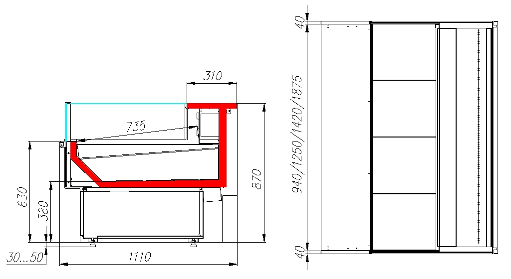 Стандартная комплектация холодильных витрин Bavaria 2 GC110 (стандартное исполнение):
