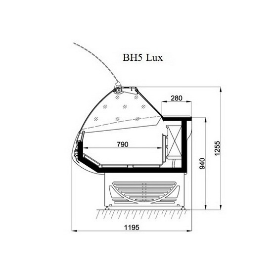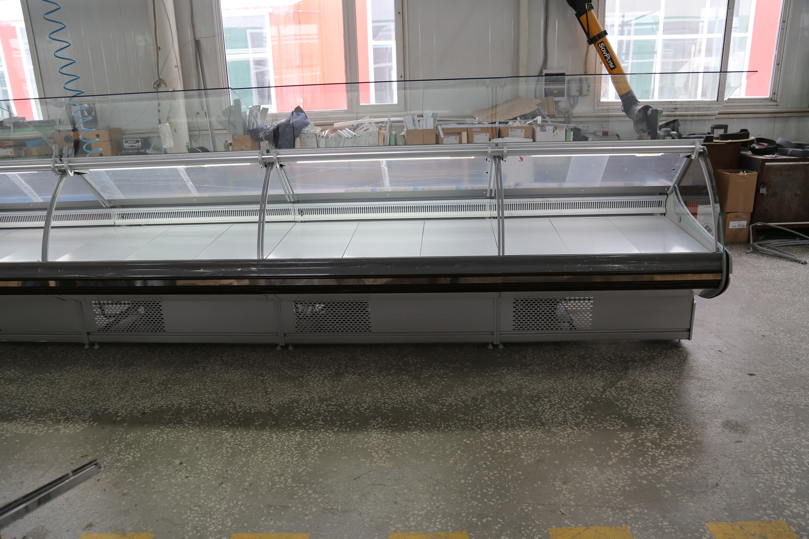Отличие холодильных витрин серии «Титаниум Lux» от «Титаниум»: подъем фронтального стекла на гидролифтах.