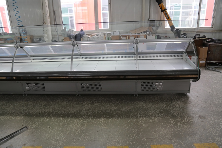 Отличие холодильных витрин серии “Титаниум Lux” от “Титаниум”: подъем фронтального стекла на гидролифтах.