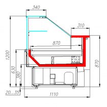 Указана длина с боковинами (заказываются отдельно). Опции для холодильной витрины Carboma CG110: