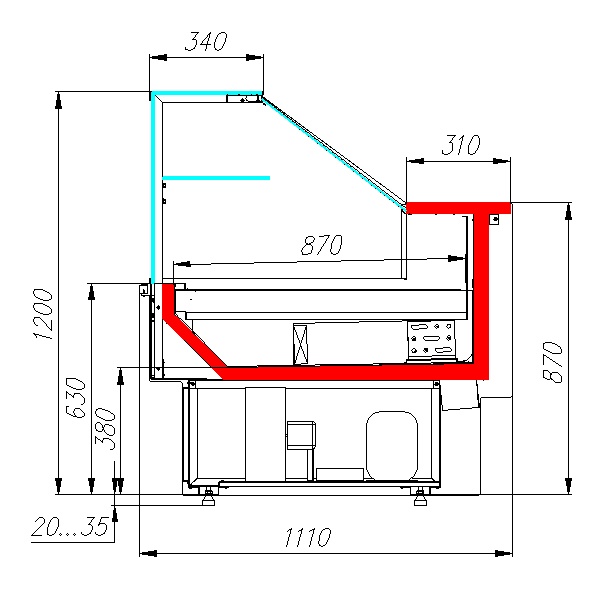 Указана длина с боковинами (заказываются отдельно). Опции для холодильной витрины Carboma GC110:
