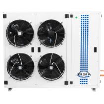 ККБ 4-го габарита на базе 6-полюсных вентиляторов. Среднетемпературный агрегат (при t исп -10ºС, t конд. +45ºС, перегрев 5К, переохл. 0К), на базе компрессора “Copeland”.