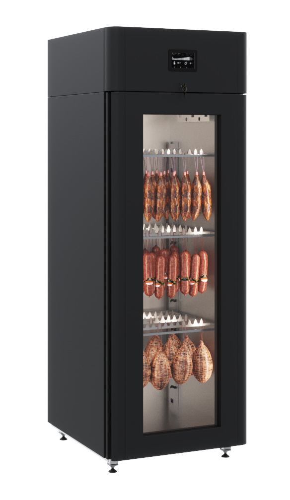 Шкаф Polair CS107 Salami blaсk– специализированная модель для вызревания колбасных деликатесов, которые станут отличными новинками ассортимента мясного магазина или кафе. Благодаря современному дизайну с эффектной черной расцветкой шкаф легко впишется в интерьер ресторана и привлечет внимание посетителей к продукции. Шкаф оборудован ультразвуковым увлажнителем, УФ-лампой и холодильной системой с мягким обдувом, создающим подходящие условия для созревания вяленой колбасы. На электронной панели с 5-дюймовым дисплеем вы легко настроите температуру и относительную влажность для каждого этапа созревания.