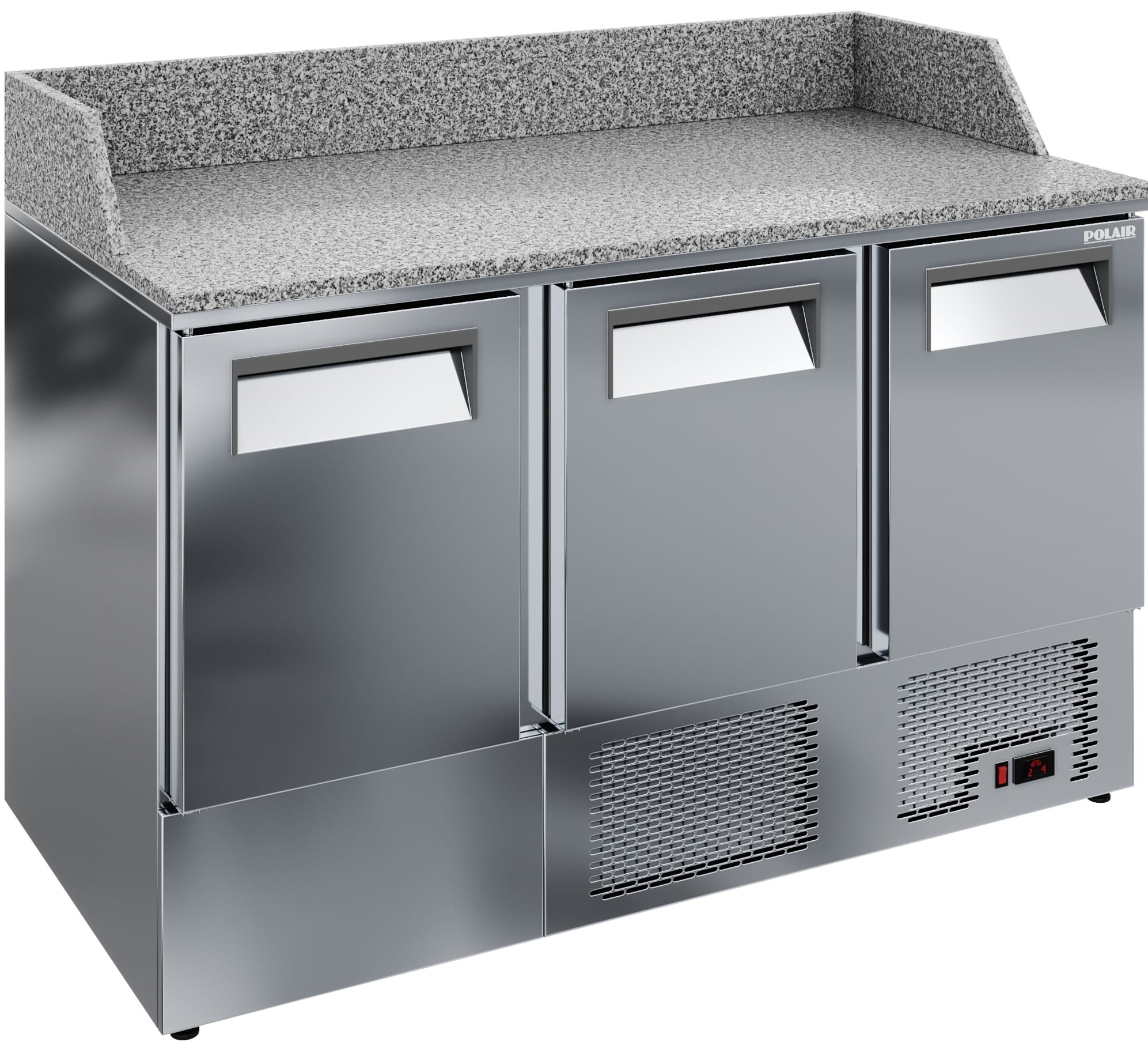 Специализированныйхолодильный стол Polair TMi3GNpizza-GCсделает работу пиццайоло (специалиста по изготовлению пиццы) более комфортной и оперативной. Рабочим пространством повара станет гранитная столешница, на которой особенно удобно работать с тестом при высокой внешней температуре, ведь натуральный гранит хорошо сохраняет прохладу в жарких условиях. Сделать работу повара еще более эффективной поможет компатная витрина для ингредиентов — для ее установки специально предусмотрены высокие борты с трех сторон. Таким образом, после установки витрины место под ней останется свободным.